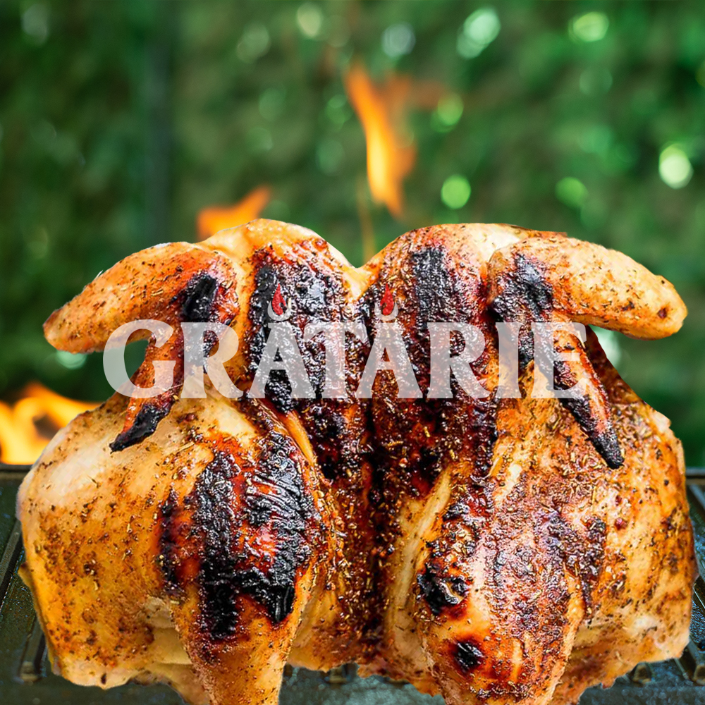 Savurează gustul autentic al puiului pe grătar! Mereu proaspăt, mereu delicios, se prezintă cu un exterior crocant și un interior suculent și fraged, după ce a fost condimendat și fezandat inițial, iar după gătire așteaptă baia de mujdei.